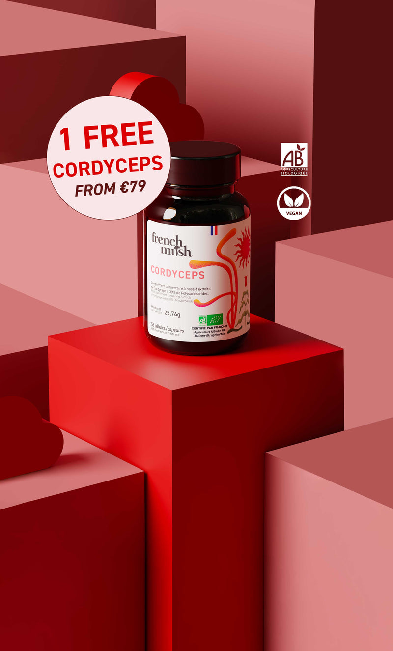 Energy & Vitality: These so-called functional mushrooms are also essential for revitalizing the body. They help boost metabolism and provide it with tone and vitality . For example, thanks to its high content of amino acids , vitamins and minerals , the Reishi mushroom plays a crucial role in concentration and memory . In addition, some mushrooms are known to stimulate the libido , making them perfect food supplements for general vitality . This is particularly the case with the Cordyceps mushroom, the all-category champion for improving your physical performance and increasing your energy level .