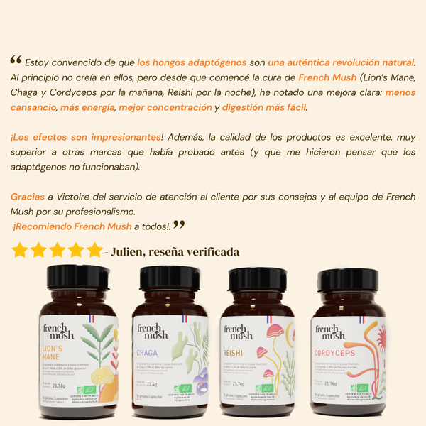French Mush le garantiza suplementos alimenticios trazables y 100 % orgánicos.
