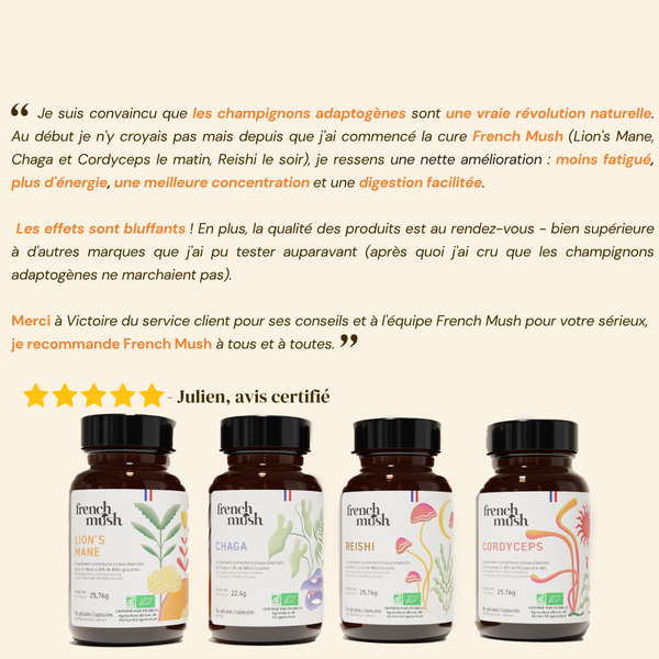 French Mush vous garantit des compléments alimentaires traçables et 100 % biologiques.