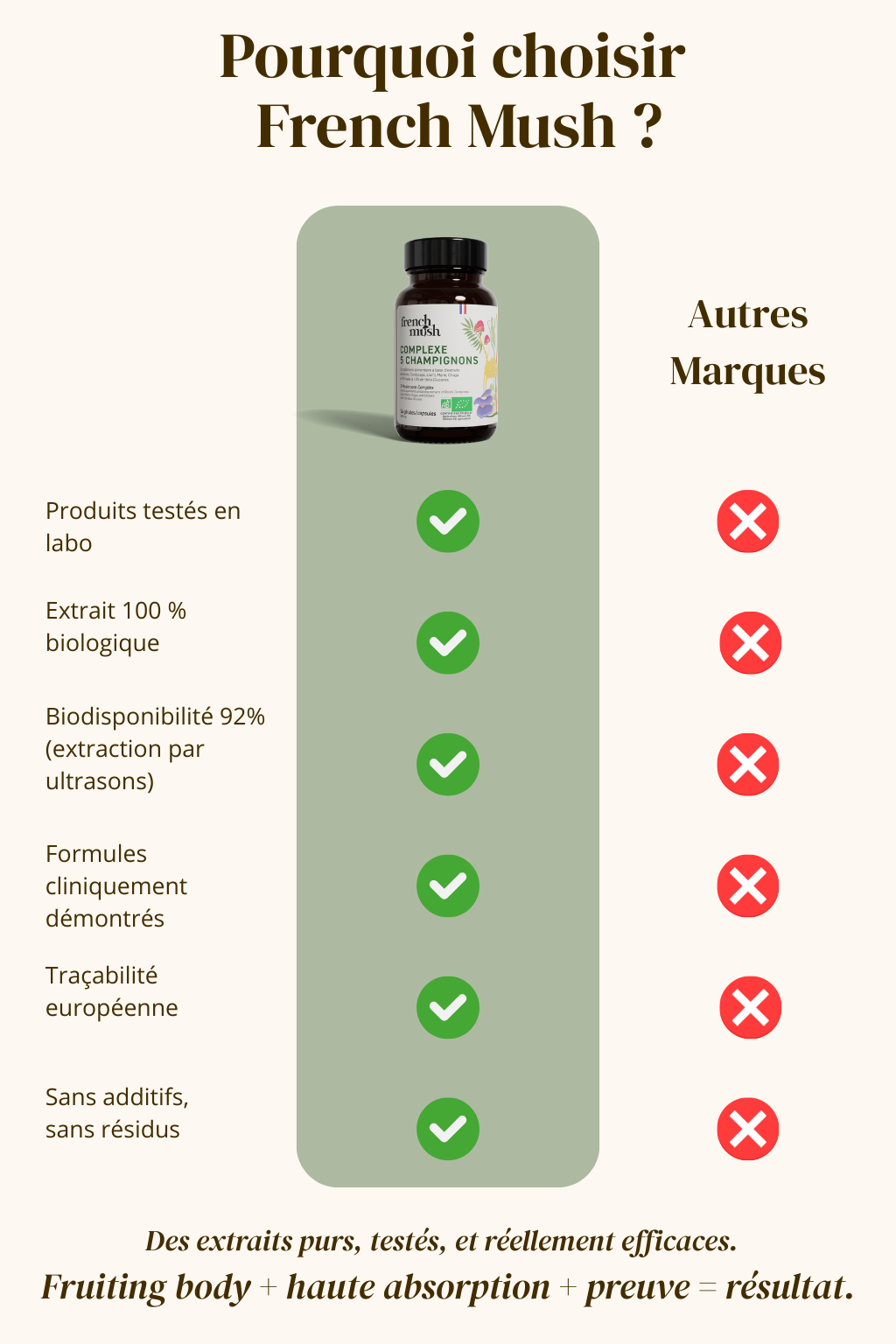 È la nostra formula più potente: 5 funghi medicinali 100% bio, coltivati in Europa, estratti a ultrasuoni per un assorbimento massimo (92%).